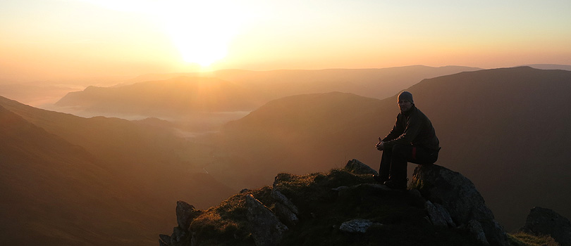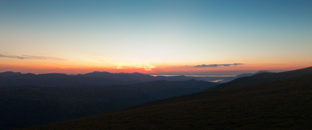 | A sunset from the top of the Nethermost Pike Range – in the distance you can see the Solway Firth and Bassenthwaite lake I think. |