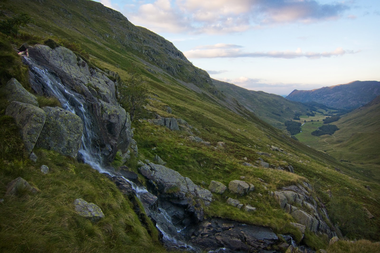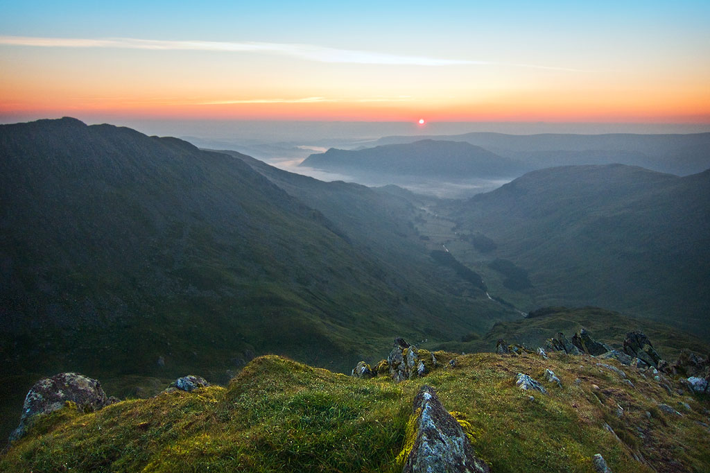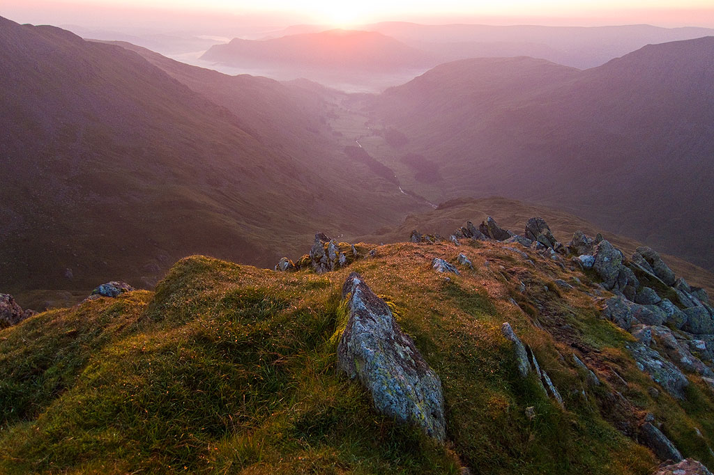 | Looking down Grisedale Valley as the last drops of sunlight reach the distant peaks. |