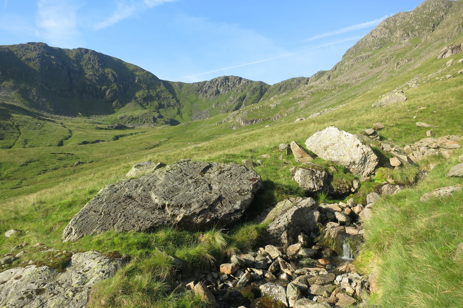 The clue is in the name of this place – it’s not the easiest place to get too haha. I’d walked these parts a few times before – so knew the route up to Grisedale Valley from Patterdale well – and had stopped at Ruthwaite Lodge a few times for a bite to eat as you get a superb view down the valley from it’s elevated position. However once you get to the lodge along the well-marked path – it’s a case of going off the beaten track- making your own path and following the river and cascading waterfalls up towards Hard Tarn – and using a map, the surrounding mountains (and a GPS as fall back plan) as your guide. It’s steep and can get boggy – so this isn’t one for beginners.