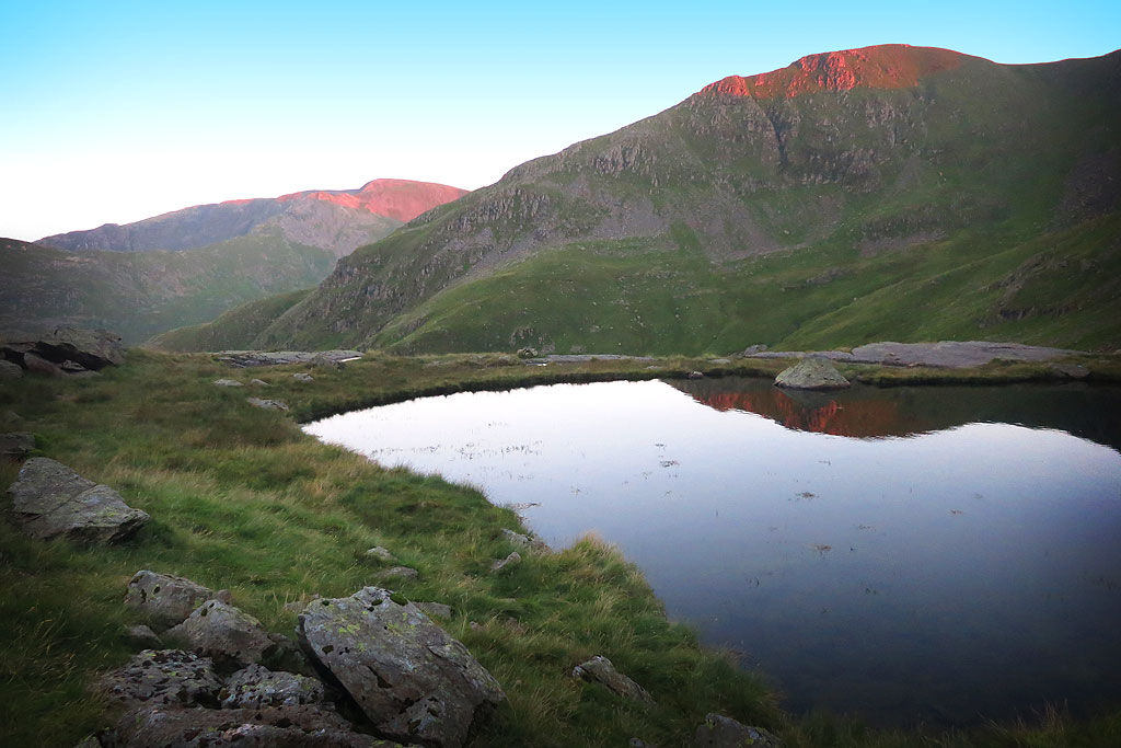 I camped up at High Tarn last Thursday night – a very dramatic location, but I didn't have such good weather as you. Continued on over windswept Helvellyn after a very steep climb up the headwall of Ruthwaite Cove, and returned down Sticks Pass past Greenside Mine. A great mini adventure.