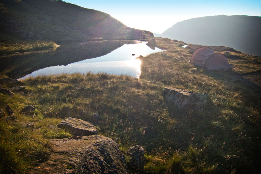 Wild camping in the Lakes at Hard Tarn, near Helvellyn