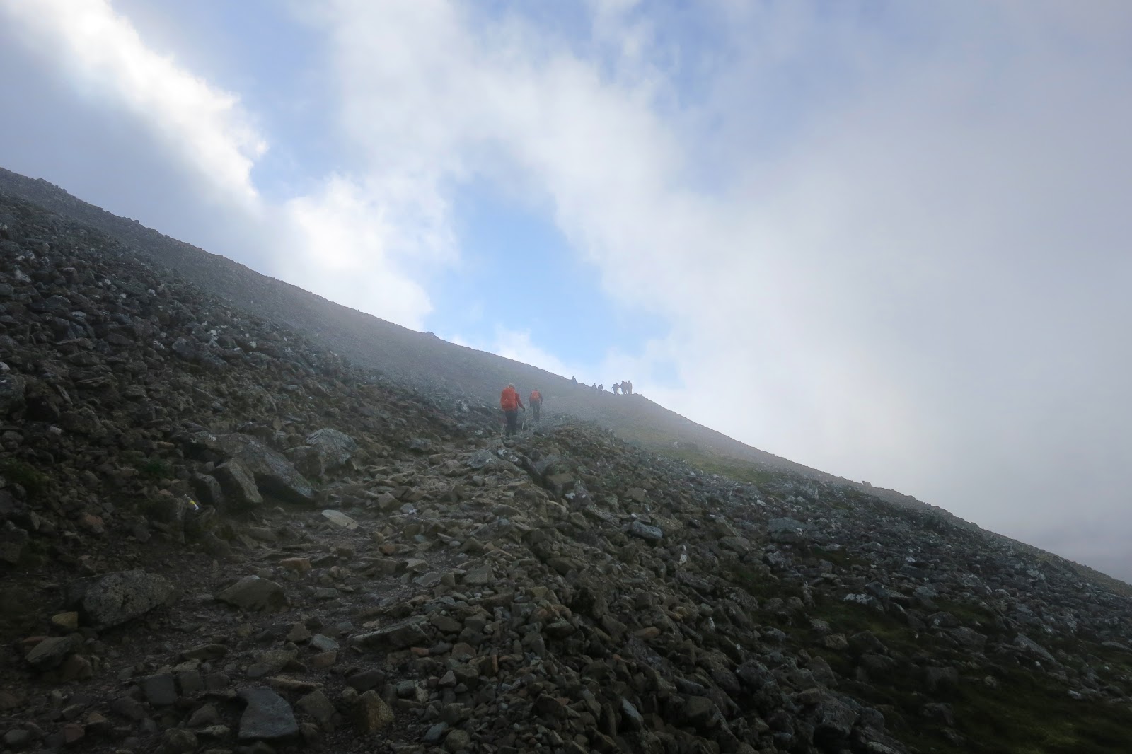 The title of this post was ‘a challenging walk (beginners/tourist route)’. I put beginners in there because – you can, effectively, do this walk with no map reading skills whatsoever as the path is clearly defined all the way to the top, and there is no scrambling involving your hands – just very steep rocky steps for most of the way! Lots of people do this walk on most days during the warmer months, and you can just follow everybody else. This was the busiest walk I’ve ever done, some would say too busy, but I found it a nice change, and quite inspiring to see lots of people, men & women (and kids), from the very young to the very old doing the walk (lots even doing it for charity). There was even a triathalon event on when I done this walk – with the running part being to run to the summit and back! Rather them than me….