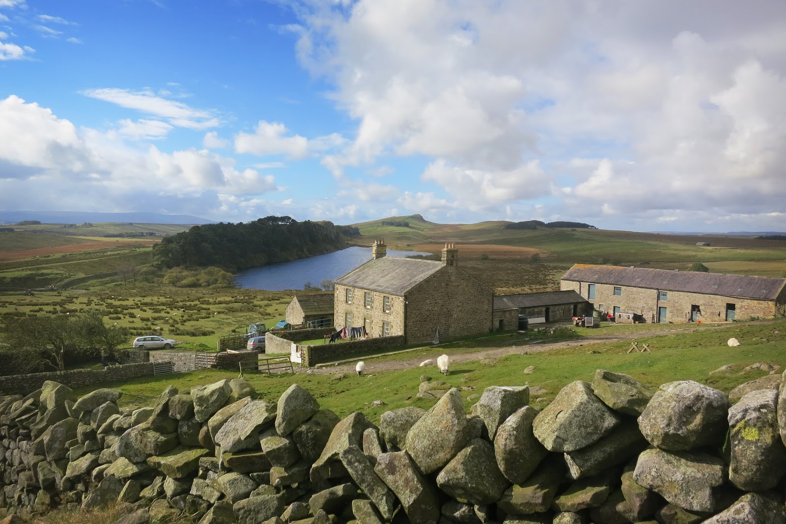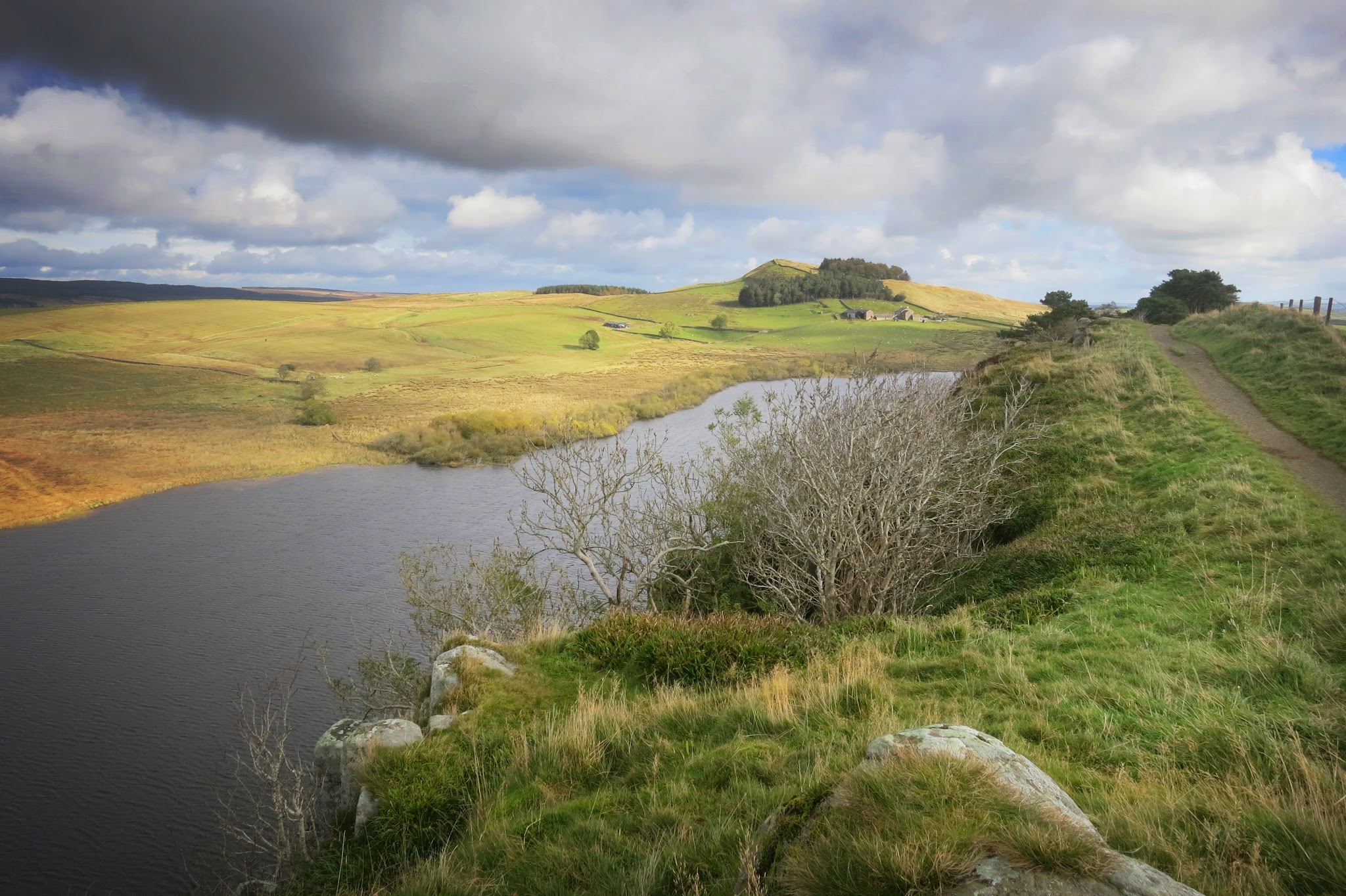 | Heading east right besides Hadrian’s Wall towards Housesteads Roman Fort with Broomlee Loch now in sight |