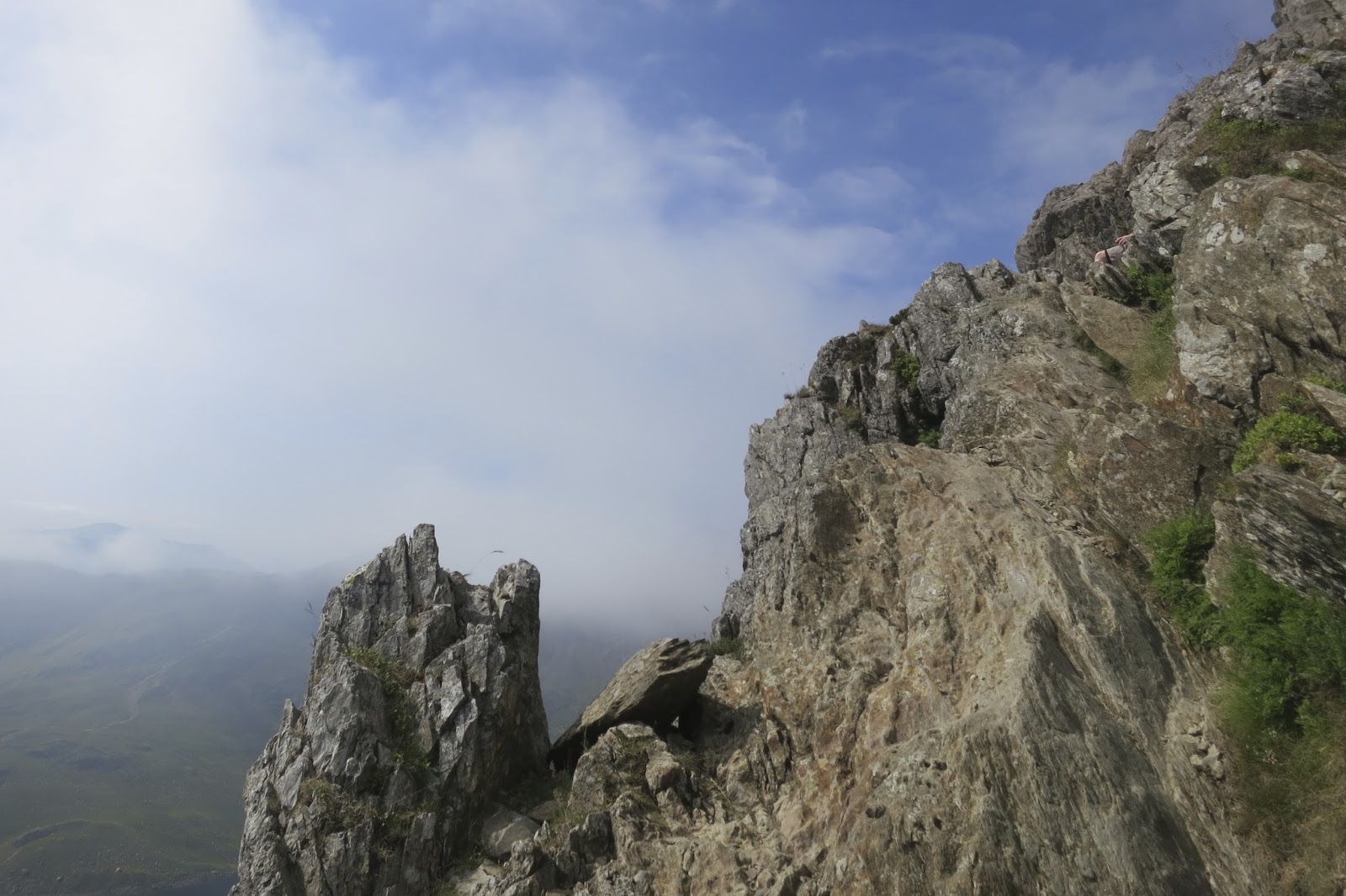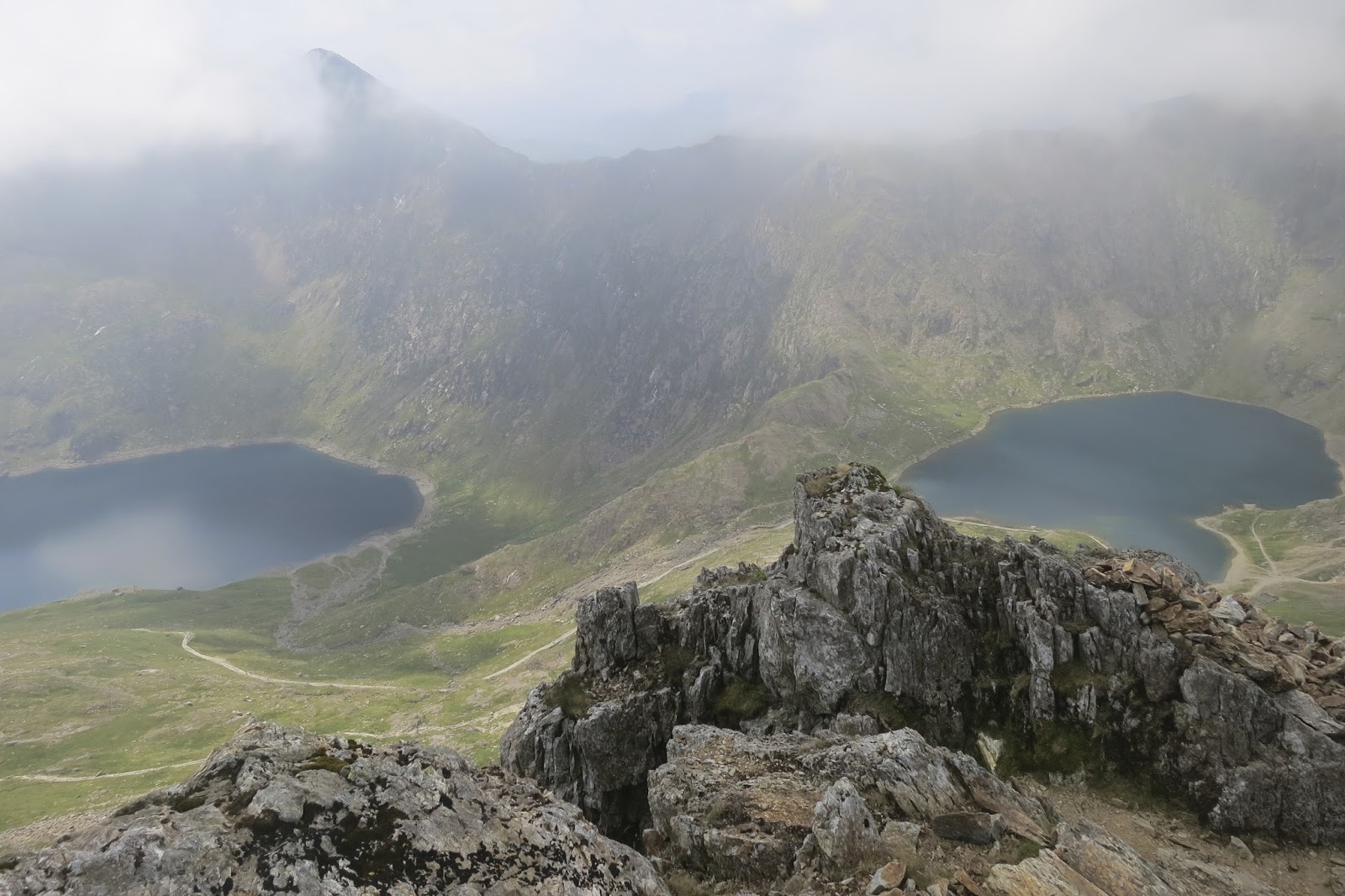 | We can just see the summit of Snowdon appearing from the clouds |