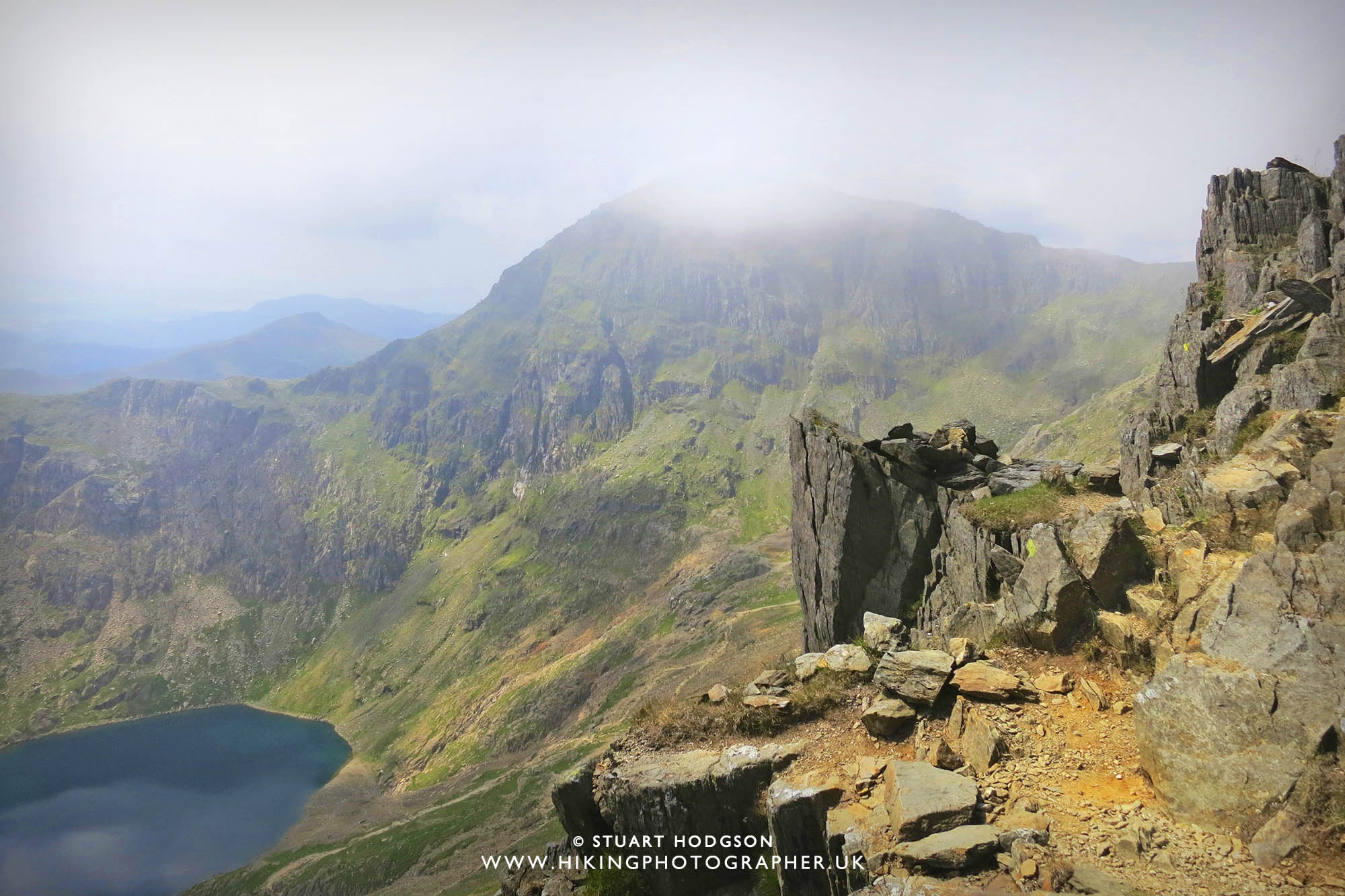 | Snowdon to the top-right with Y Lliwed in the distance, |