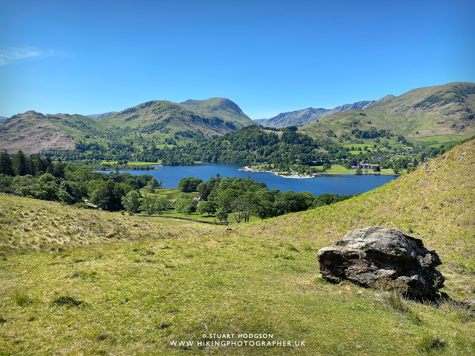 | You get stunning views of Ullswater on this walk which sticks close to it’s shores. Here we are looking down the eastern section of Ullswater towards Howtown & Pooley Bridge in the far distance |