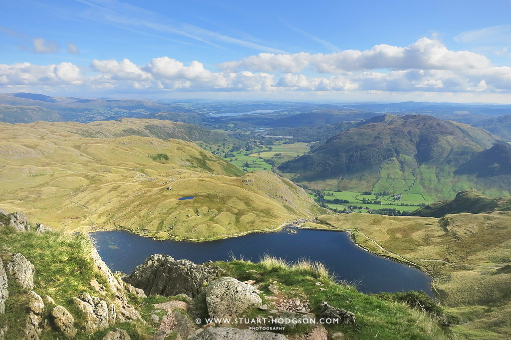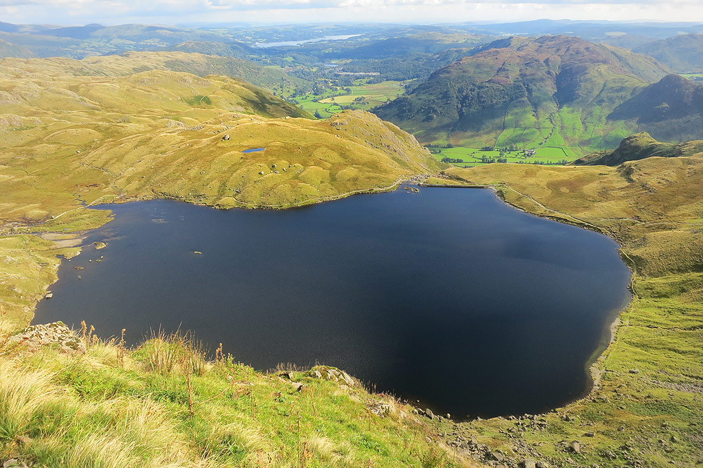 | You can see Blea Tarn in the centre of shot here – with Side Pike to the left – a good place for a little visit in itself if you have time |