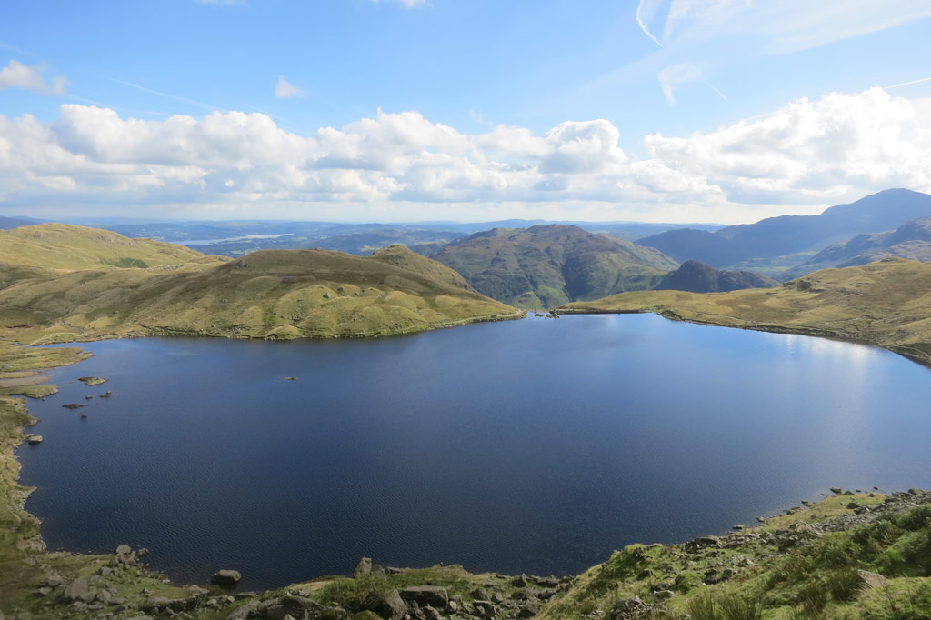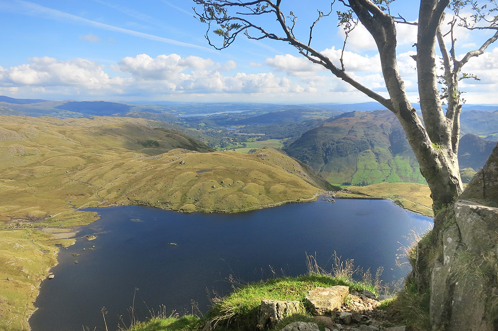 | We are getting quite high above Stickle Tarn now – and you can see Windermere in the distance. |