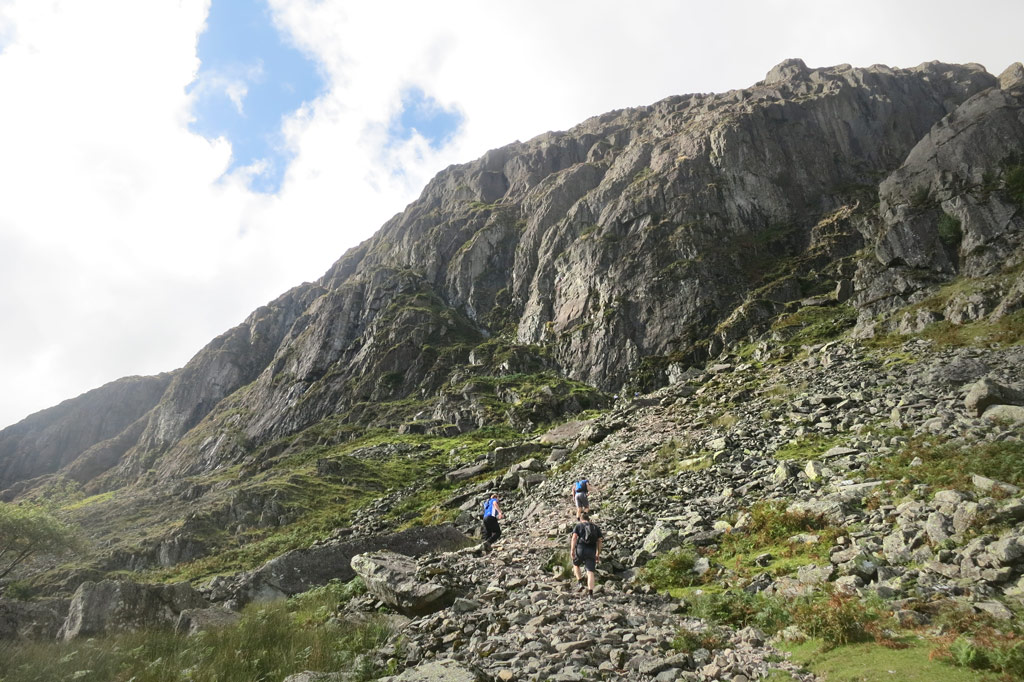 | Approaching the start of Jacks Rake. It’s quite slow going walking up the scree to the start of the scramble. |