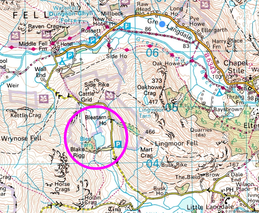 I have circled Blea Tarn here so you can see exactly where it is in Langdale in the Lake District, and there are 2 ways to approach by car (from the north or south of the tarn), both up some narrow and steep sections of road. For those not familiar with Blea Tarn in the Lake District, it is an idyllic little tarn in the Langdale area. Whilst it looks remote (there are hardly any buildings around this whole area) – you can actually drive up to Blea Tarn along narrow, sometimes steep, country lanes and it’s about a 30 min drive west from Ambleside. One ether you will find a National trust car park. If you haven’t been to Blea Tarn before – hopefully these photos convince you to do so!