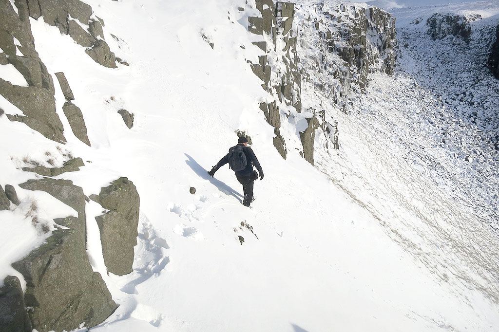 | My mate is off scouting a path down to the valley near Nichols Chair. The snow has covered all traces of a path so it’s a bit tricky to find the path. |