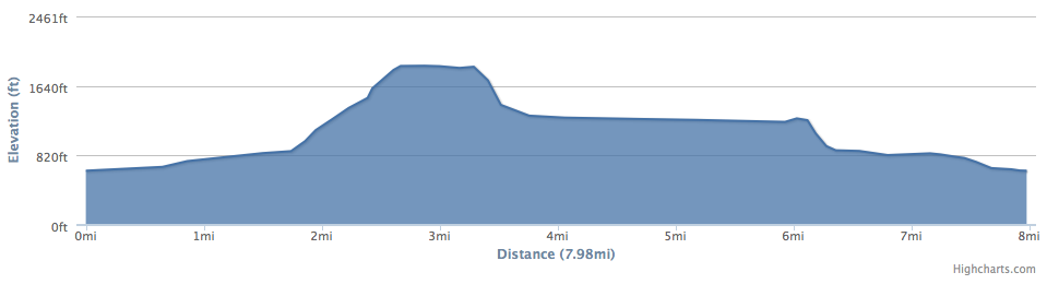 | As you can see the distance is 8 miles, reaching a Total climb of: 1,314.76 ft |