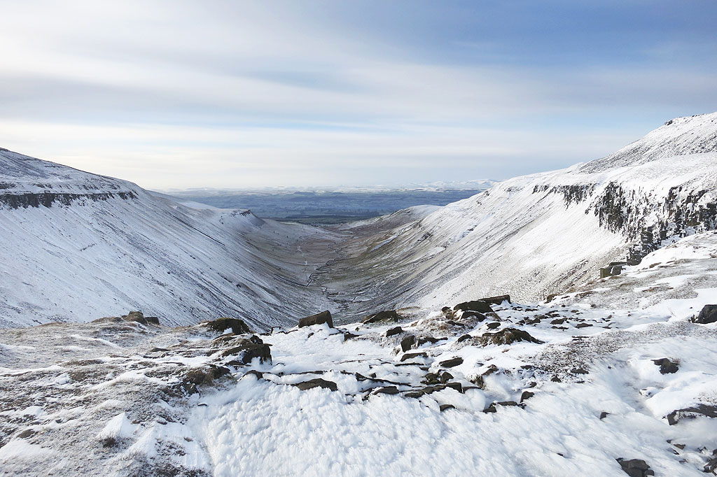 I’d been itching to get out on a decent walk since xmas – so when I seen the snow arrive up north in the middle of January I just had to get out. I’d been wanting to visit High Cup Nick in Cumbria for a while – and I thought that place would look pretty impressive with a coating of snow. Fortunately on his day there was good visibility – a bit of blue in the sky and no wind – although a bit chilly!