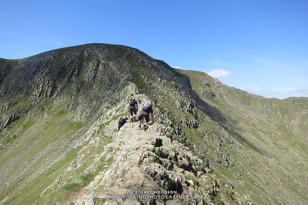 Us lot making our way across the top of the Striding Edge ridge line with Helvellyn in the distance |