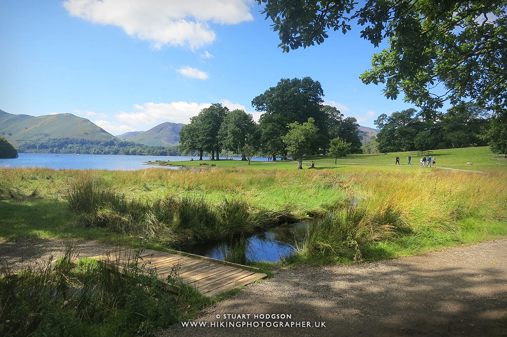 At the earliest opportunity on your left we will leave the road and take the path that will lead to the shore of Derwent Water |
