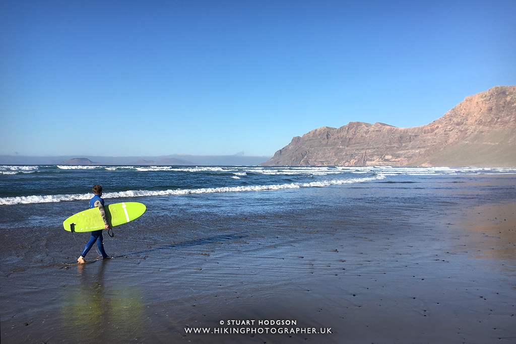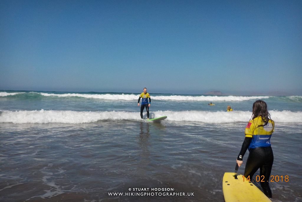 Surfing is always something I’ve wanted to do, but where I live in the North-East of England the waters are just not as appealing as the turquoise waters you see in warmer parts of the world :-). It was on a holiday to Lanzarote where I learned that the small resort of Famara on the west-coast of Lanzarote has some of the best waters to learn to surf in Europe. So I spent a couple of days there learning to surf with some pre-arranged lessons through Lanzasurf