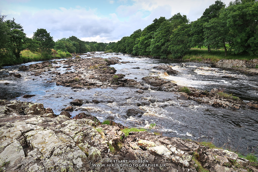 | Looking up the River Tees over the cascading water |