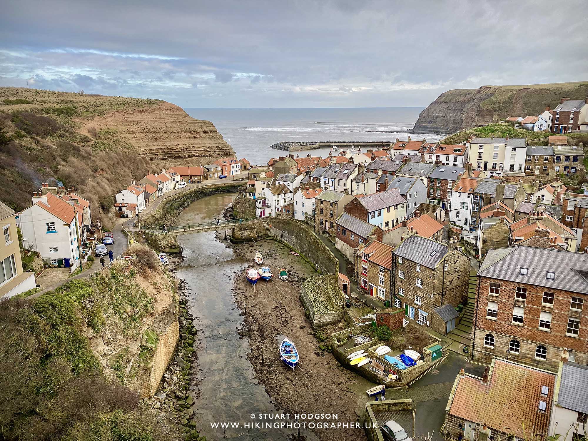 Staithes walk to the best viewpoint over the Staithes Cottages on the Yorkshire coast near Whitby