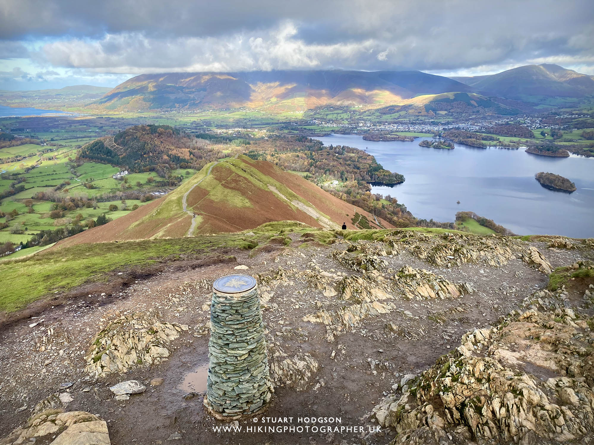 And we arrive at the Catbells summit! We’re looking north here backwards where we have walked and get stunning views of Derwent Water, the town of Keswick off to the right and the mountains of Skiddaw & Blencathra in the distance. |