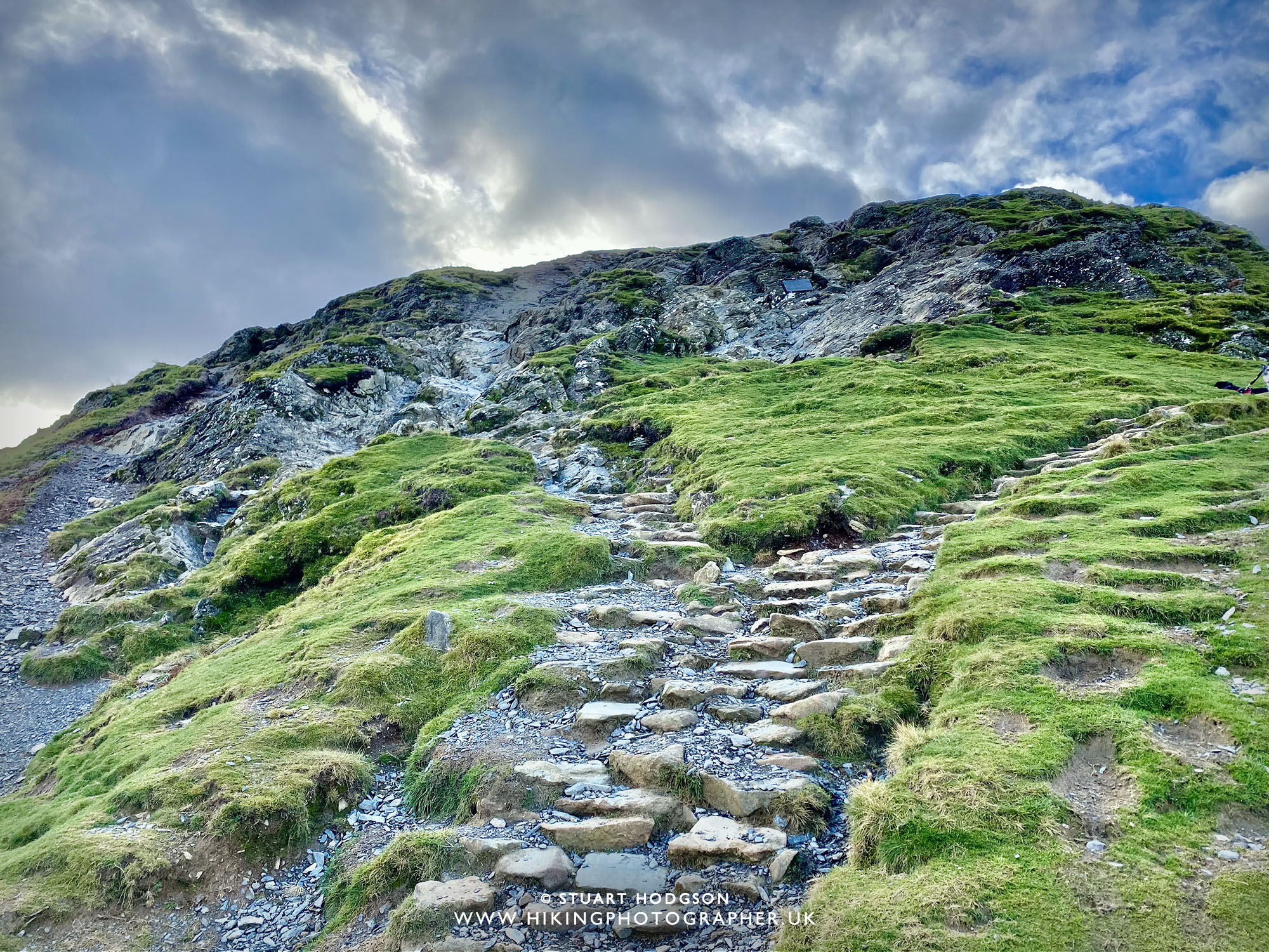 The initial path winds it’s way up Skelgil Bank, changing between stone steps and gravel path. |