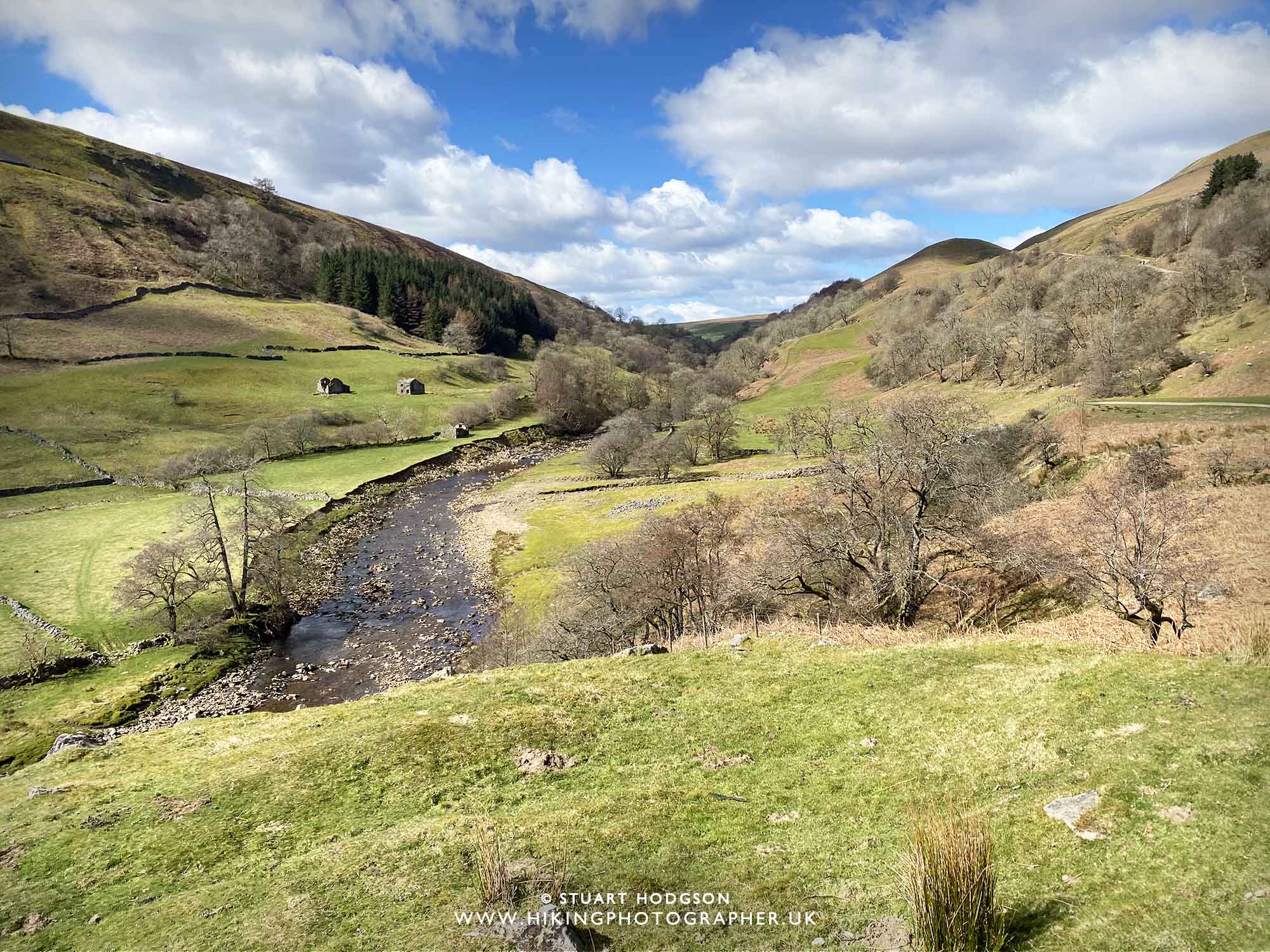 Looking back up the River Swale to where we have come from. We will return on the path to the left of the River Swale in this picture. |