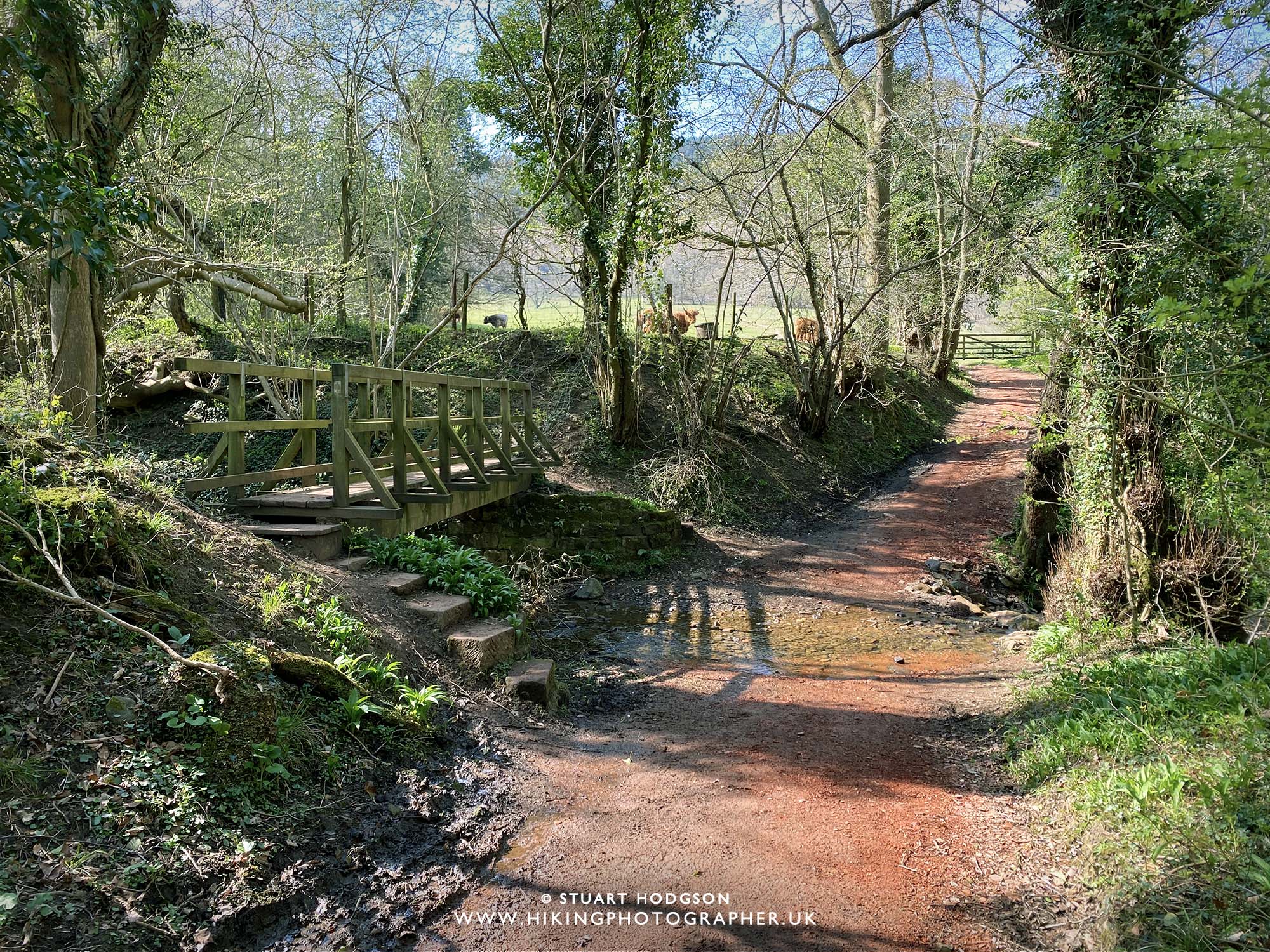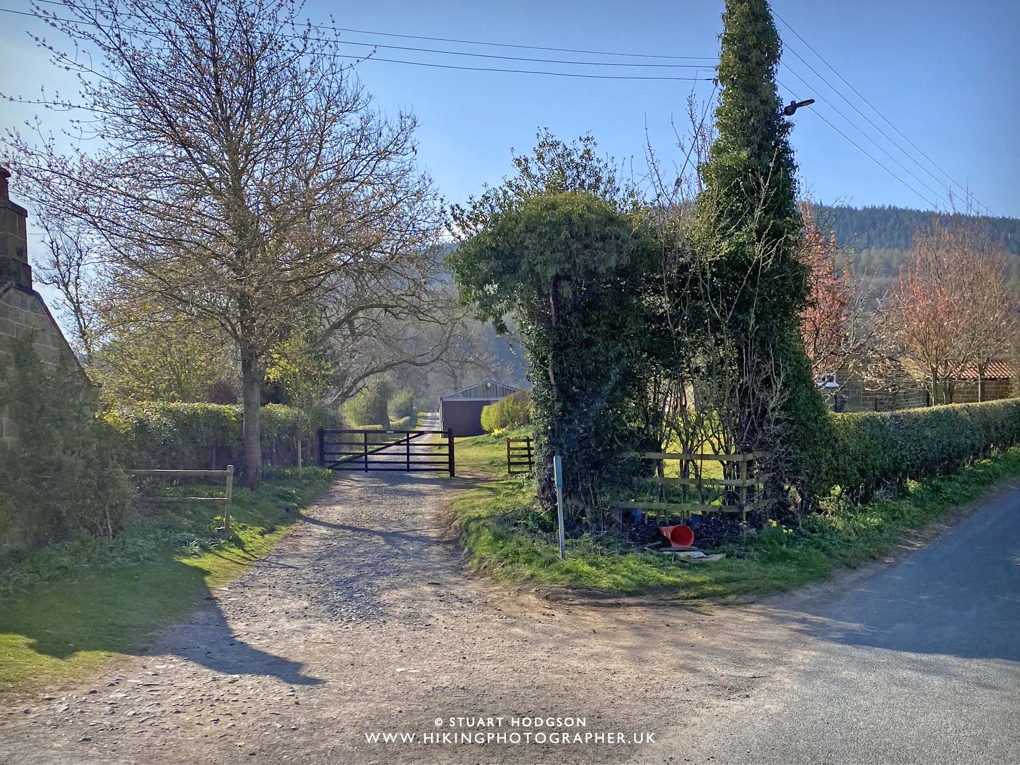 | You’ll head south out of the village on this minor road until you come off it and take the footpath here on your left |