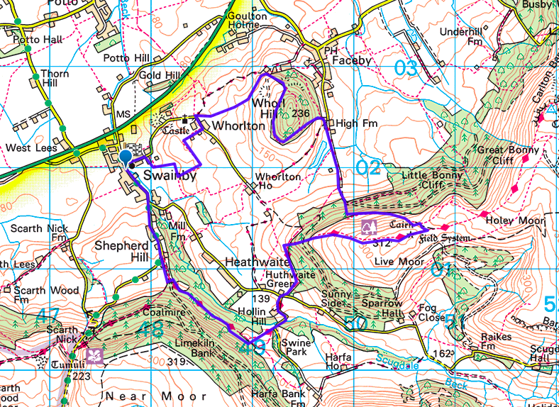 | After skirting around Whorlton Hill – it’s a case of then heading back to Swainby on a nice leisurely stroll for a drink and something to eat 🙂 |