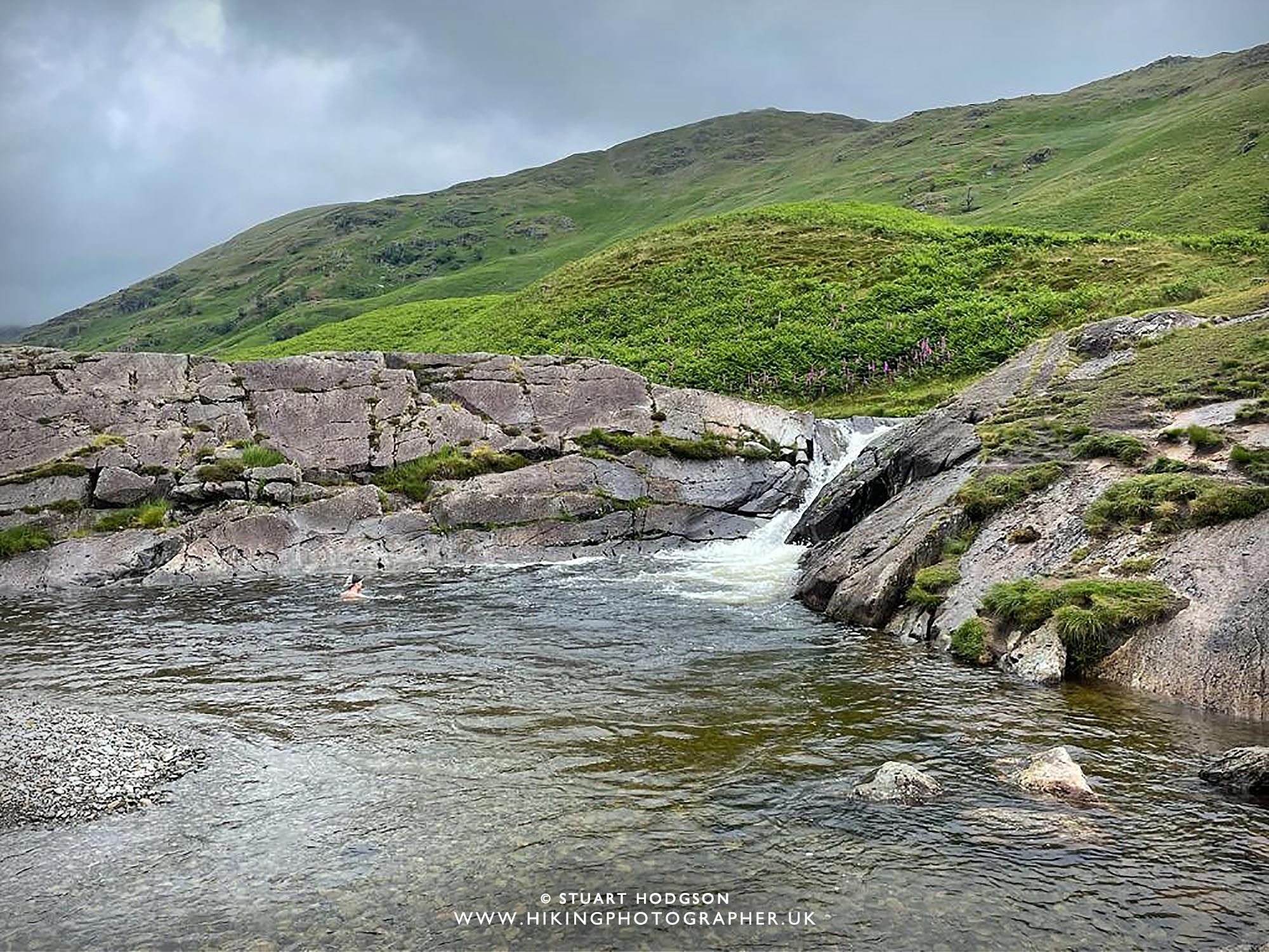 | What a spot for a wild swim in the Lake District – the current from that modest waterfall his really strong though! |