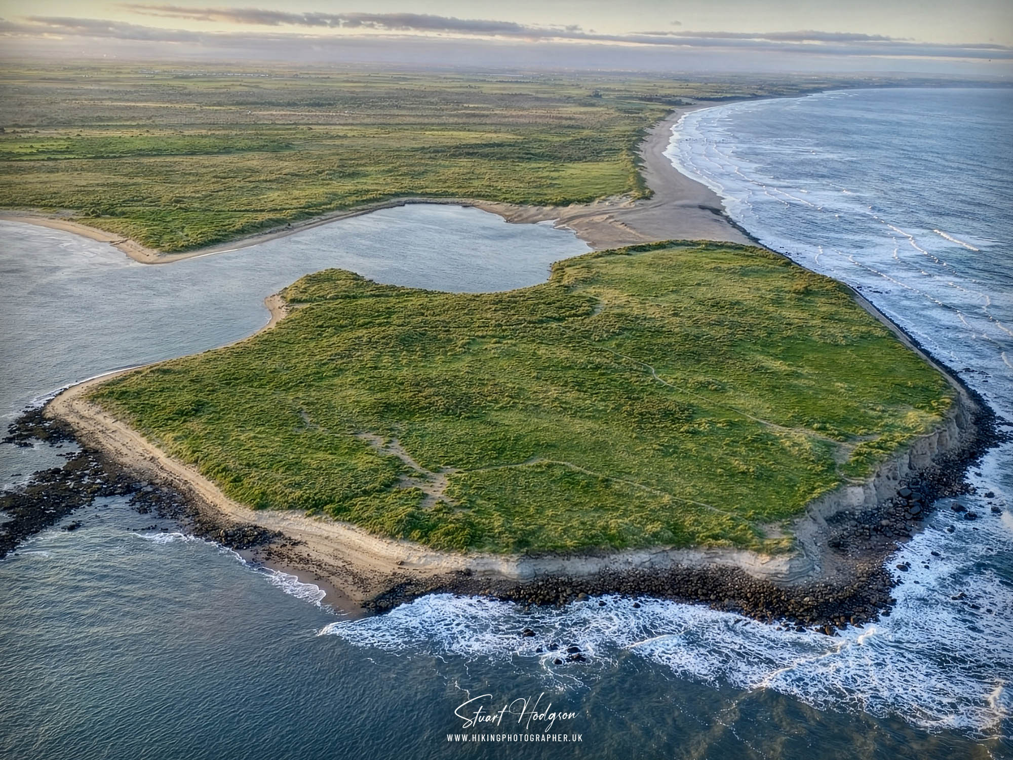 I’m personally fascinated by how places must have looked before human settlment – and I used AI to create an image of what Hereteu might have looked like before human settlement. See my creation below, whilst it misses key features – it gives a flavour of what it might have looked like. The island is known in geological form as a Tombolo, which is a depositional landform—a ridge of sand or shingle—that connects an island to the mainland or to another island. Formed by wave refraction and longshore drift, these features often develop in the sheltered, low-energy wake of an island where sediment accumulates, which can be partially submerged at high tide. It’s these natural features which give the island natural protection – and likely the reason why the early Monastery was built here (like the one on Lindisfarne up the coast) and once the early monastry was here – the rest of the Headlands history followed!